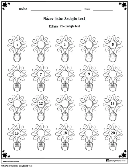 Pracovní list chybějící čísla s květinami (černobílý)