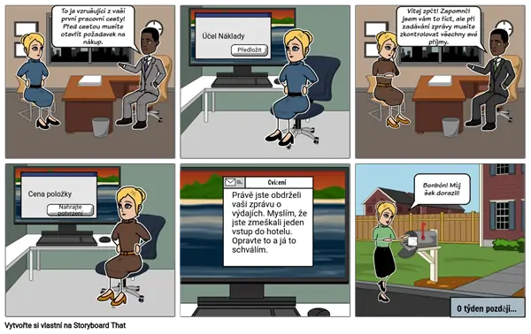 Zprávy o výdajích mohou být bolestí, které je třeba vyplnit, ale pokud tak neučiníte, je to docela nákladné. Tento příběh prochází několika běžnými kroky v procesu. Všimněte si, jak šéf náhodně sklouzne v kritických částech časové osy.