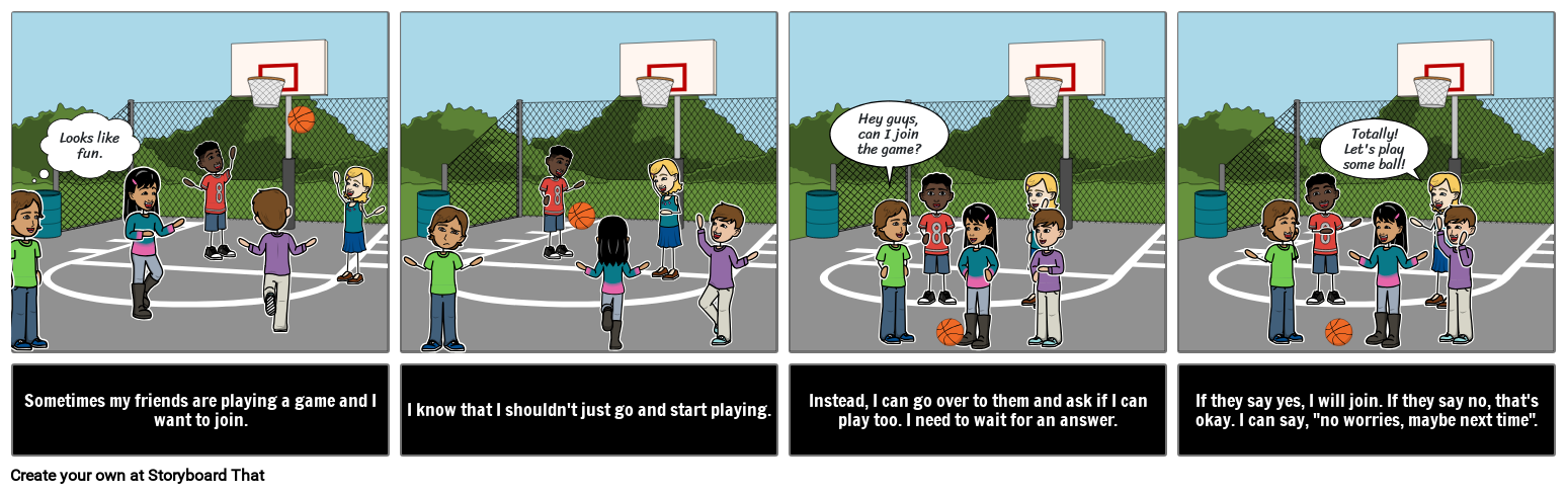 Instead, I can go over to them and ask if I can play too. I need to wait for an answer.
