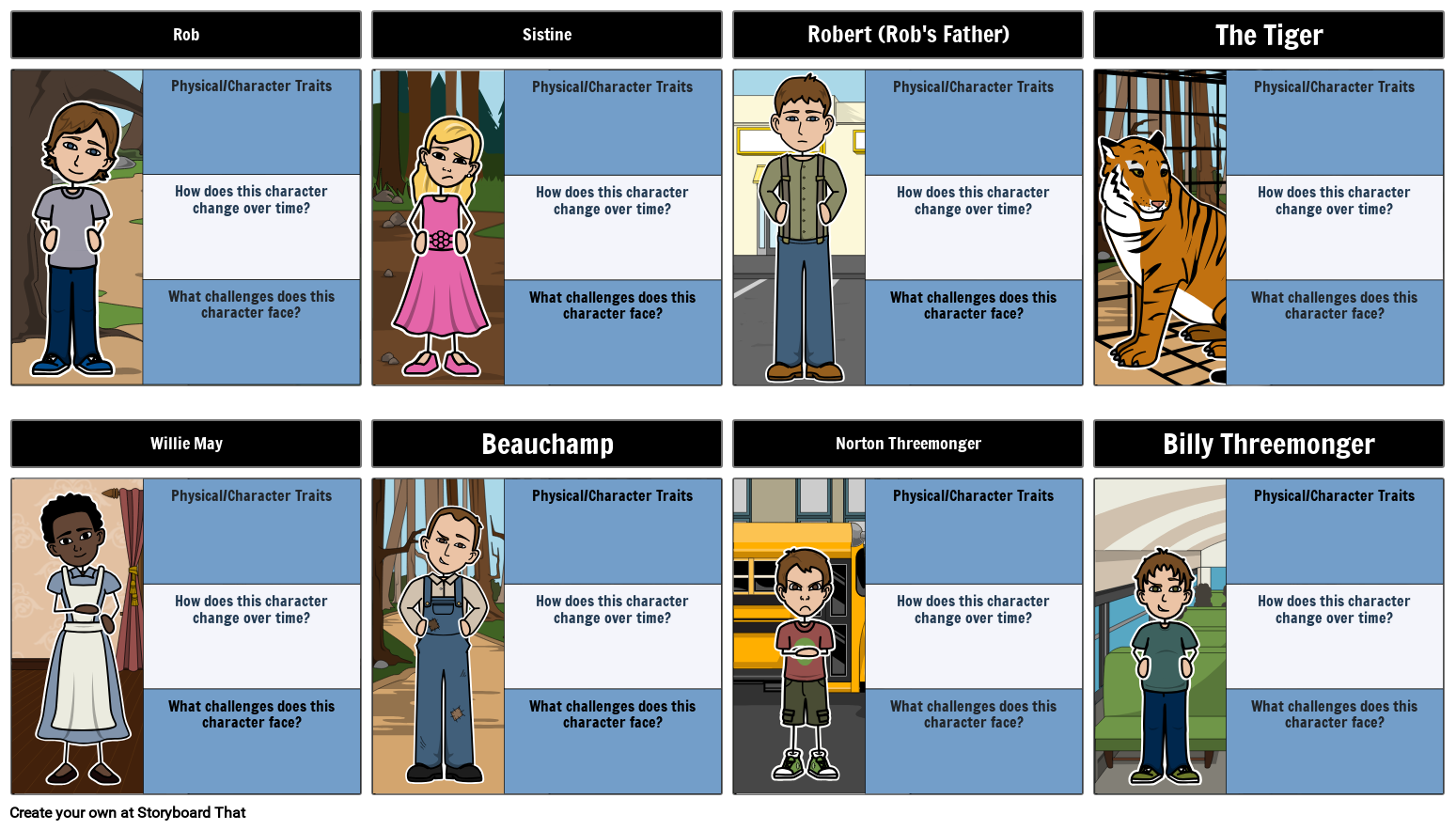 Schüler können eine Zeichentabelle verwenden, um die Charaktere in The Tiger Rising von Kate DiCamillo zu verfolgen