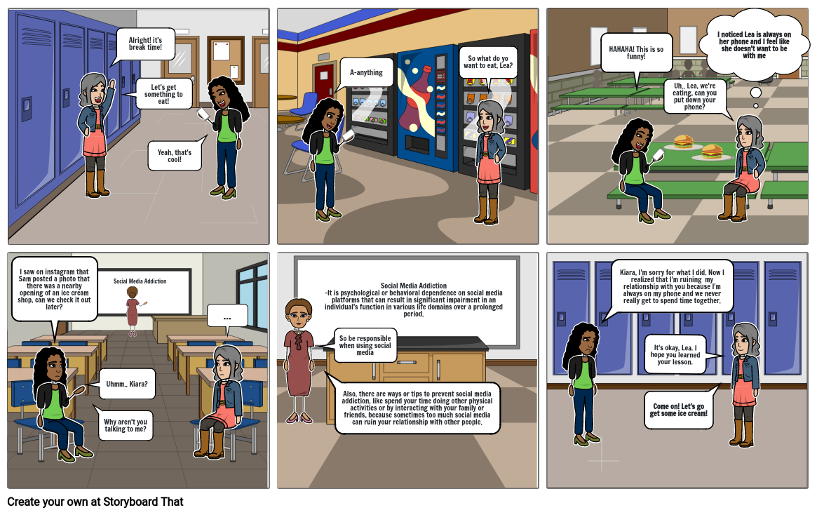 Also, there are ways or tips to prevent social media addiction, like spend your time doing other physical activities or by interacting with your family or friends, because sometimes too much social media can ruin your relationship with other people.