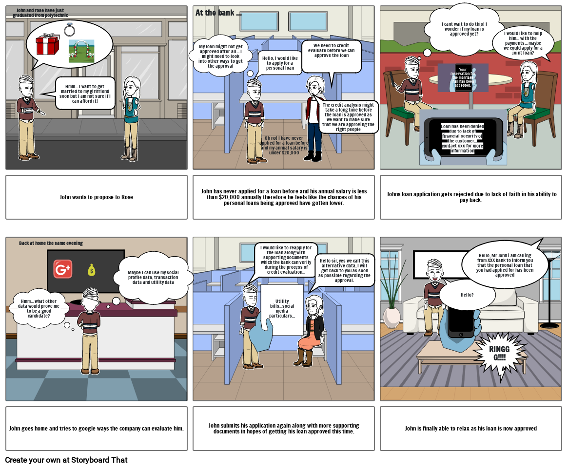 .Johns loan application gets rejected due to lack of faith in his ability to pay back.