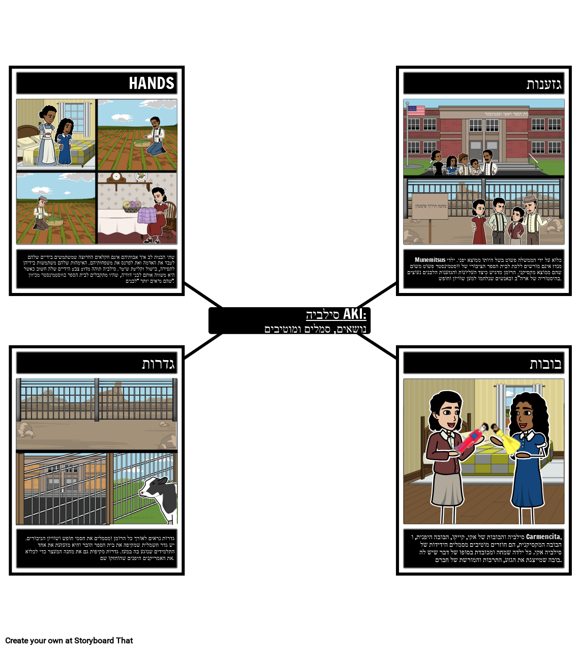 התלמידים יכולים לעקוב אחר הנושאים, הסמלים והמוטיבים השונים הקיימים ברומן וליצור מפת עכביש המתייגת, מגדירה וממחישה אותם.