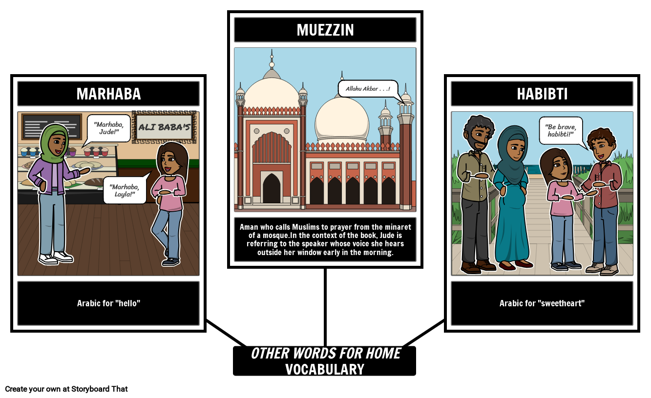 התחלת יחידה או שיעור בעזרת אוצר המילים העיקרי בהבנה ובשימור הכללי. בפעילות זו התלמידים ייצרו לוח סיפור המגדיר וממחיש אוצר מילים מרכזי המצוי בספר מילים אחרות לבית מאת יסמין וורגה. התלמידים ייצרו מפת עכביש של 3-5 מונחים על פי שיקול דעתם של המורים. כל תא יכיל מונח או רמיזה, הגדרתו או תיאורו, והמחשה מתאימה.