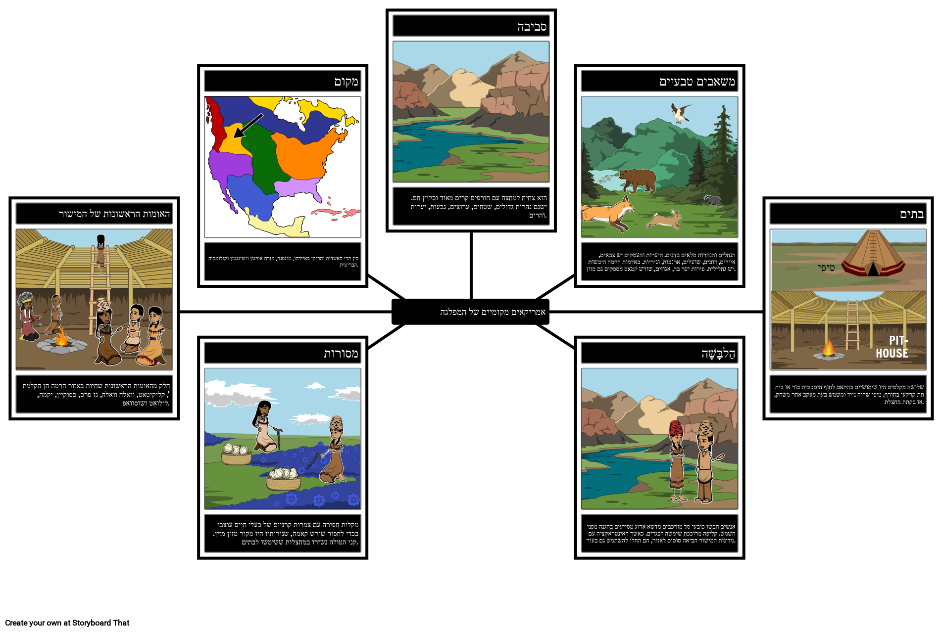 צור מפת עכביש המפרטת את הסביבה והתרבות של הילידים האמריקאים באזור הרמה