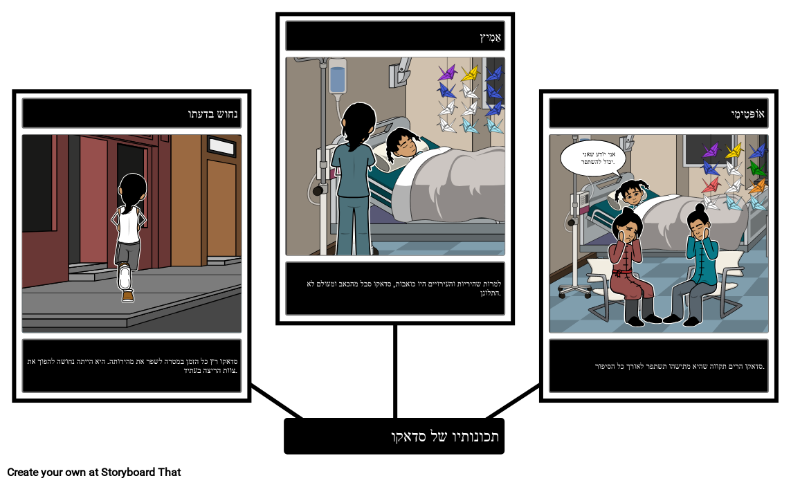 צור לוח סיפור הממחיש את תכונות האופי השונות שסדאקו מציג בסדאקו ואלף מנופי הנייר