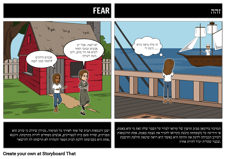 ישנן דוגמאות רבות של פחד לאורך כל הסיפור. מכיוון שידוע כי עורב הוא מפניקיס, שהיה פעם בית למצורעים, אנשים מפחדים להיות בקרבתה. דוגמא אחת היא כשניסתה ללכת לבית הספר והמורה לא הרשתה לה להישאר.