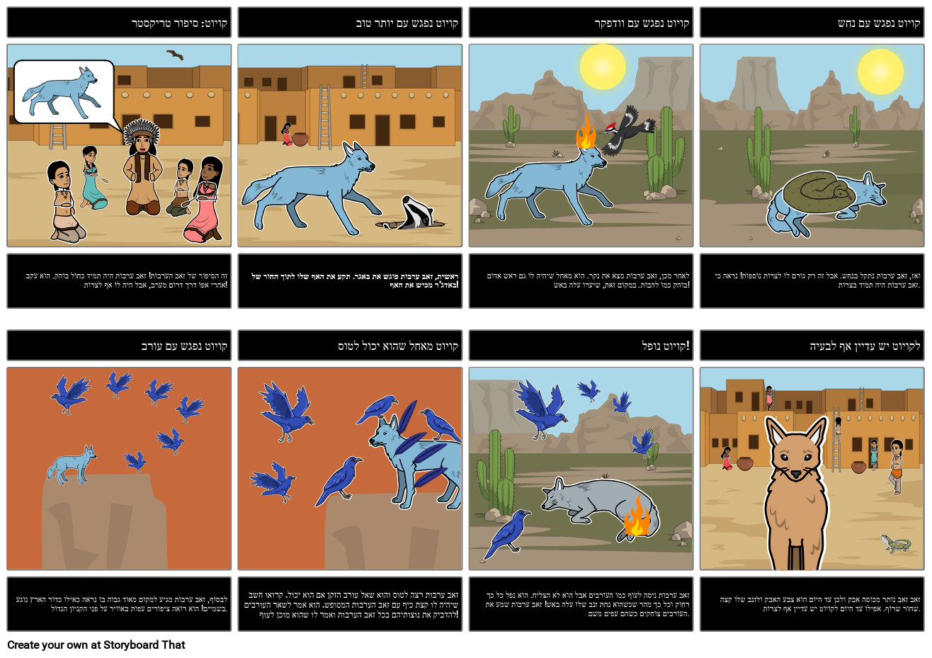 זאב ערבות ניסה לעוף כמו העורבים אבל הוא לא הצליח. הוא נפל כל כך רחוק וכל כך מהר שכשהוא נחת זנב שלו עלה באש! זאב ערבות שמע את העורבים צוחקים כשהם עפים משם.