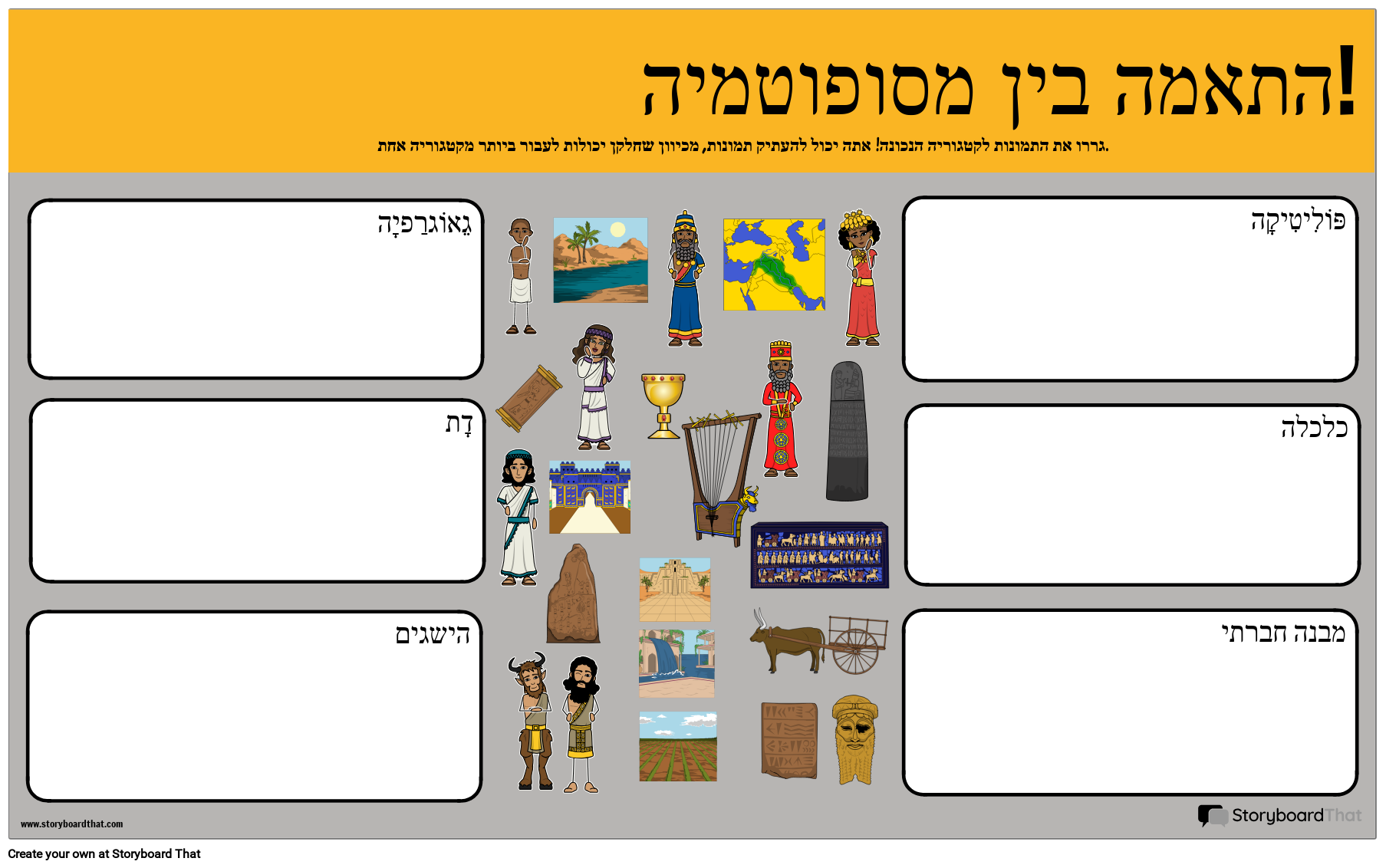גררו את התמונות לקטגוריה הנכונה! אתה יכול להעתיק תמונות, מכיוון שחלקן יכולות לעבור ביותר מקטגוריה אחת.