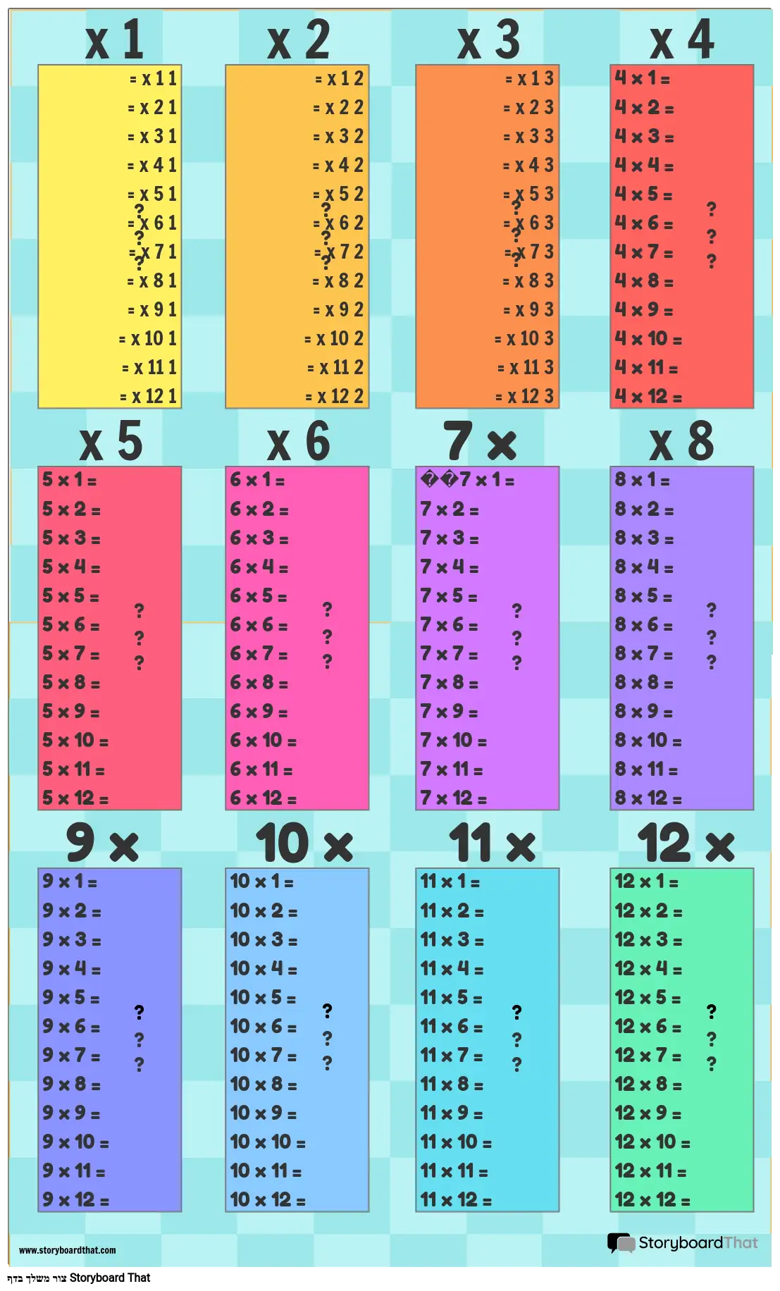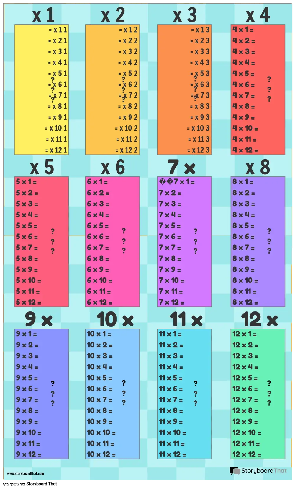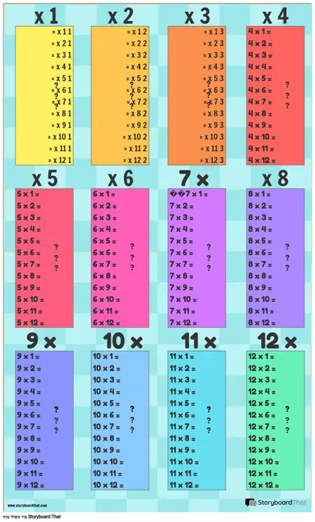 תבנית לוח כפל 1