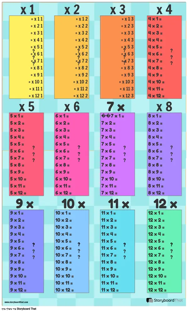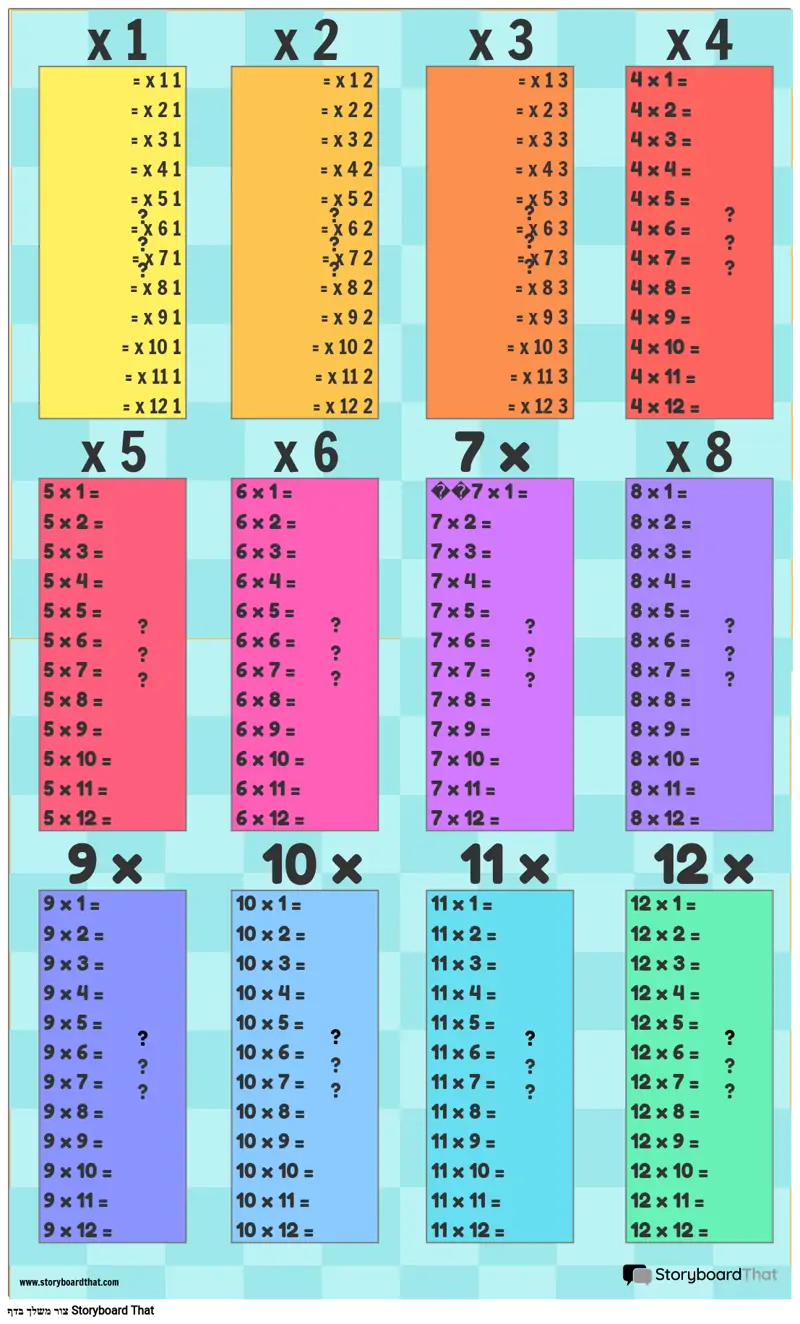 תבניות כרזת לוח כפל נהדרות למתמטיקה!