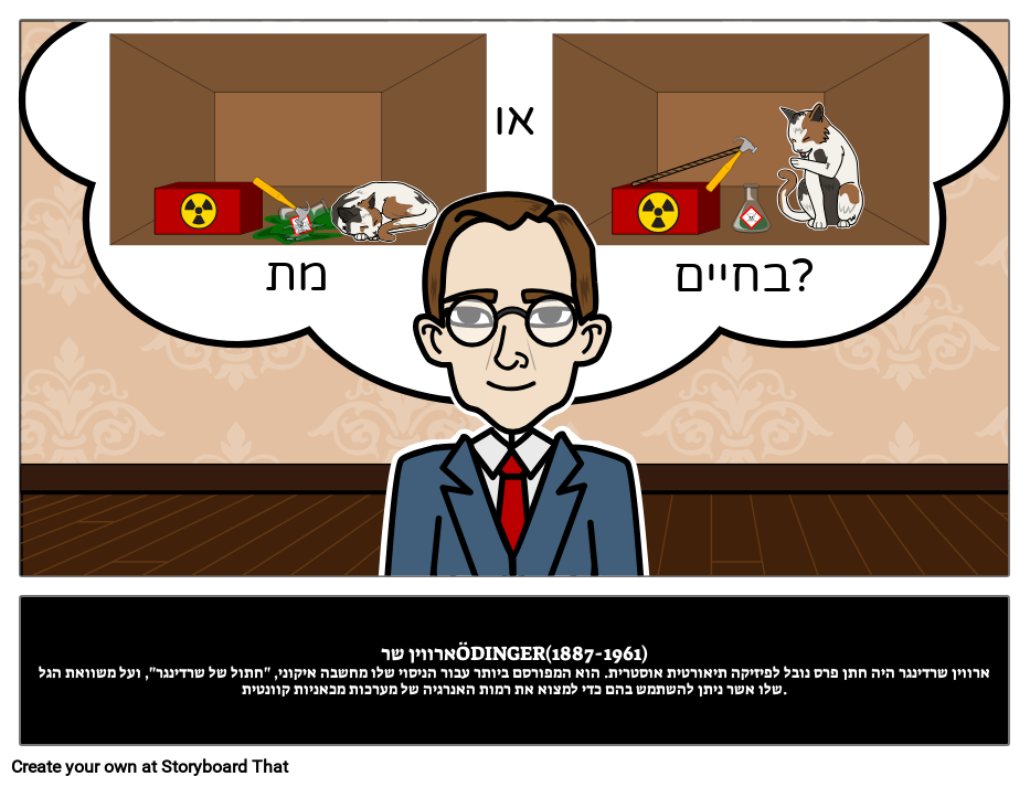 ארווין שרÖDINGER(1887-1961)ארווין שרדינגר היה חתן פרס נובל לפיזיקה תיאורטית אוסטרית. הוא המפורסם ביותר עבור הניסוי שלו מחשבה איקוני, "חתול של שרדינגר", ועל משוואת הגל שלו אשר ניתן להשתמש בהם כדי למצוא את רמות האנרגיה של מערכות מכאניות קוונטית.