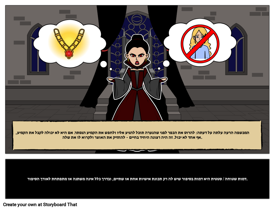 המכשפה הרעה עלתה על דעתה: להרוס את הכפר לפני שהנערה תוכל להגיע אליו ולחפש את הקמיע הנסתר. אם היא לא יכולה לקבל את הקמיע, אף אחד לא יכול. זה היה רצונה היחיד בחיים - להחזיק את האוצר ולקרוא לו את שלה.