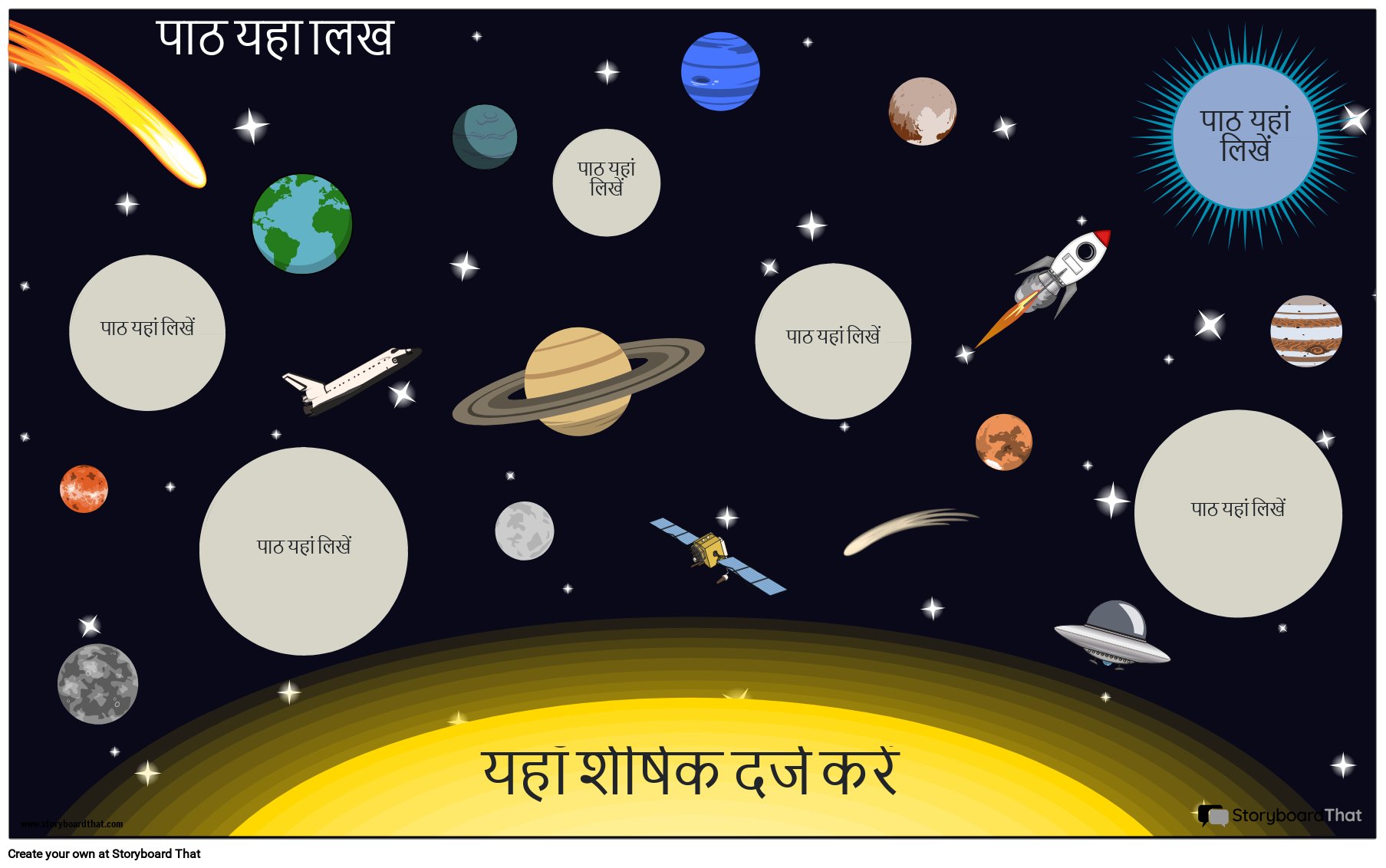 ग्रह और अंतरिक्ष विषयक विज्ञान इन्फोग्राफिक जो किसी विषय के बारे में महत्वपूर्ण तथ्यों को नेत्रहीन, संक्षिप्त और रचनात्मक रूप से वर्णित करता है।