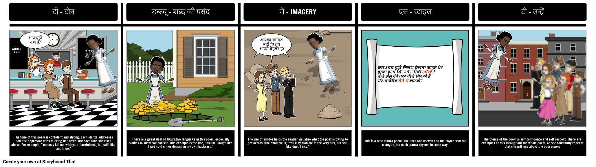 माया एंजेलो की कविता "स्टिल आई राइज" के लिए एक दो विश्लेषण बनाएँ