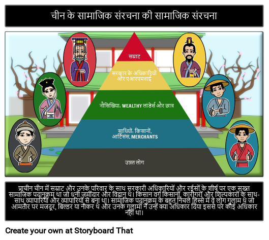 GRAPES: भूगोल, धर्म, उपलब्धियां, राजनीति, अर्थव्यवस्था और सामाजिक जीवन। यह स्टोरीबोर्ड प्राचीन चीन के सामाजिक जीवन और पदानुक्रम की व्याख्या करता है।