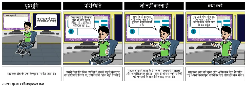 माइकल दूसरे छात्र के ईमेल के माध्यम से मतलबी और आपत्तिजनक संदेश भेजता है और उनकी सहेजी गई फाइलों के साथ खिलवाड़ करता है।