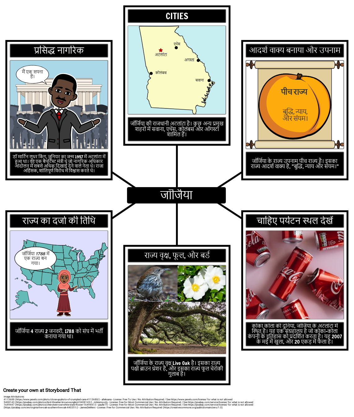 छात्र इस ग्राफिक आयोजक का उपयोग जॉर्जिया के बारे में जानकारी का ट्रैक रखने के लिए कर सकते हैं, जैसे आदर्श वाक्य, पूंजी, और बहुत कुछ।