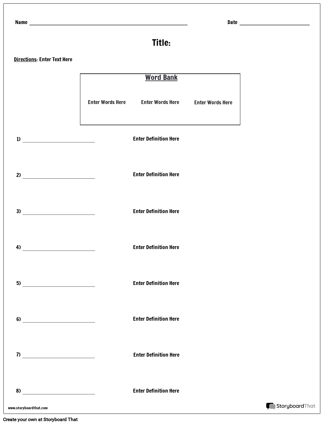 वर्ड बैंक और परिभाषाएँ | शब्दावली कार्यपत्रक