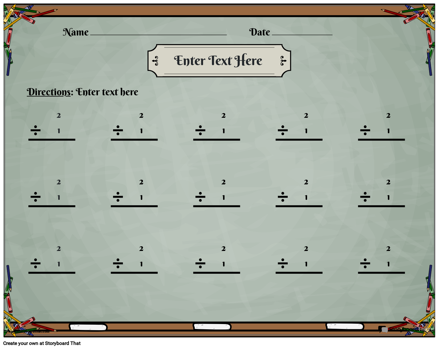 चॉकबोर्ड थीम्ड डिवीजन वर्कशीट। अनुकूलित करने में आसान!