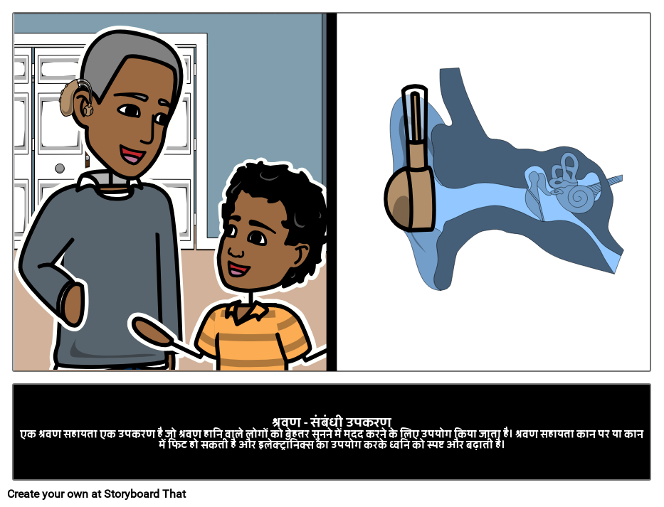 श्रवण - संबंधी उपकरणएक श्रवण सहायता एक उपकरण है जो श्रवण हानि वाले लोगों को बेहतर सुनने में मदद करने के लिए उपयोग किया जाता है। श्रवण सहायता कान पर या कान में फिट हो सकती है और इलेक्ट्रॉनिक्स का उपयोग करके ध्वनि को स्पष्ट और बढ़ाती है।