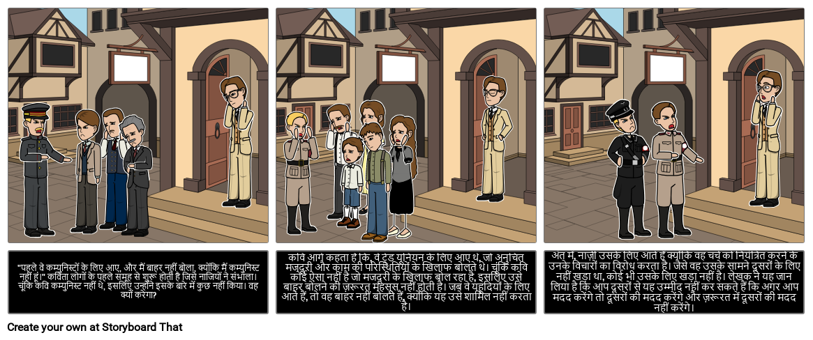 "पहले वे आए" कविता में कथा को सारांशित करने वाला एक स्टोरीबोर्ड बनाएं