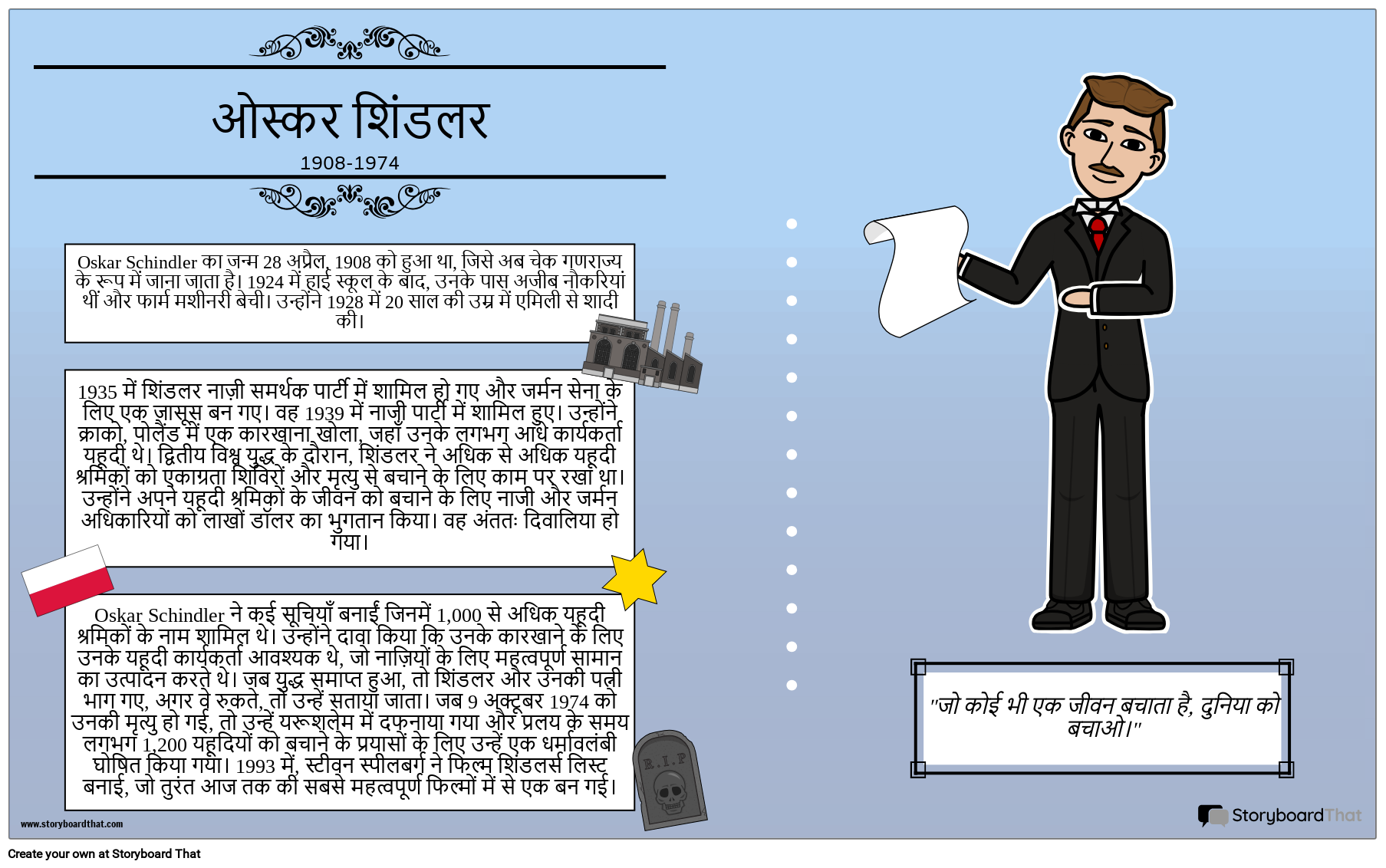 छात्र ओस्कर शिंडलर या अन्य लोगों की जीवनी बना सकते हैं जो प्रलय के दौरान प्रभावशाली व्यक्ति थे।