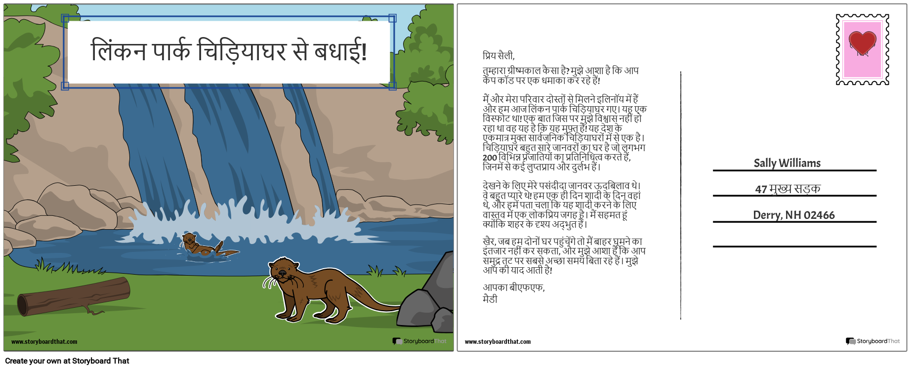 प्रिय सैली, तुम्हारा ग्रीष्मकाल कैसा है? मुझे आशा है कि आप केप कॉड पर एक धमाका कर रहे हैं! मैं और मेरा परिवार दोस्तों से मिलने इलिनॉय में हैं और हम आज लिंकन पार्क चिड़ियाघर गए। यह एक विस्फोट था! एक बात जिस पर मुझे विश्वास नहीं हो रहा था वह यह है कि यह मुफ़्त है! यह देश के एकमात्र मुक्त सार्वजनिक चिड़ियाघरों में से एक है। चिड़ियाघर बहुत सारे जानवरों का घर है जो लगभग 200 विभिन्न प्रजातियों का प्रतिनिधित्व करते हैं, जिनमें से कई लुप्तप्राय और दुर्लभ हैं। देखने के लिए मेरे पसंदीदा जानवर ऊदबिलाव थे। वे बहुत प्यारे थे! हम एक ही दिन शादी के दिन वहां थे, और हमें पता चला कि यह शादी करने के लिए वास्तव में एक लोकप्रिय जगह है। मैं सहमत हूं क्योंकि शहर के दृश्य अद्भुत हैं। खैर, जब हम दोनों घर पहुंचेंगे तो मैं बाहर घूमने का इंतजार नहीं कर सकता, और मुझे आशा है कि आप समुद्र तट पर सबसे अच्छा समय बिता रहे हैं। मुझे आप की याद आती है! आपका बीएफएफ, मैडी