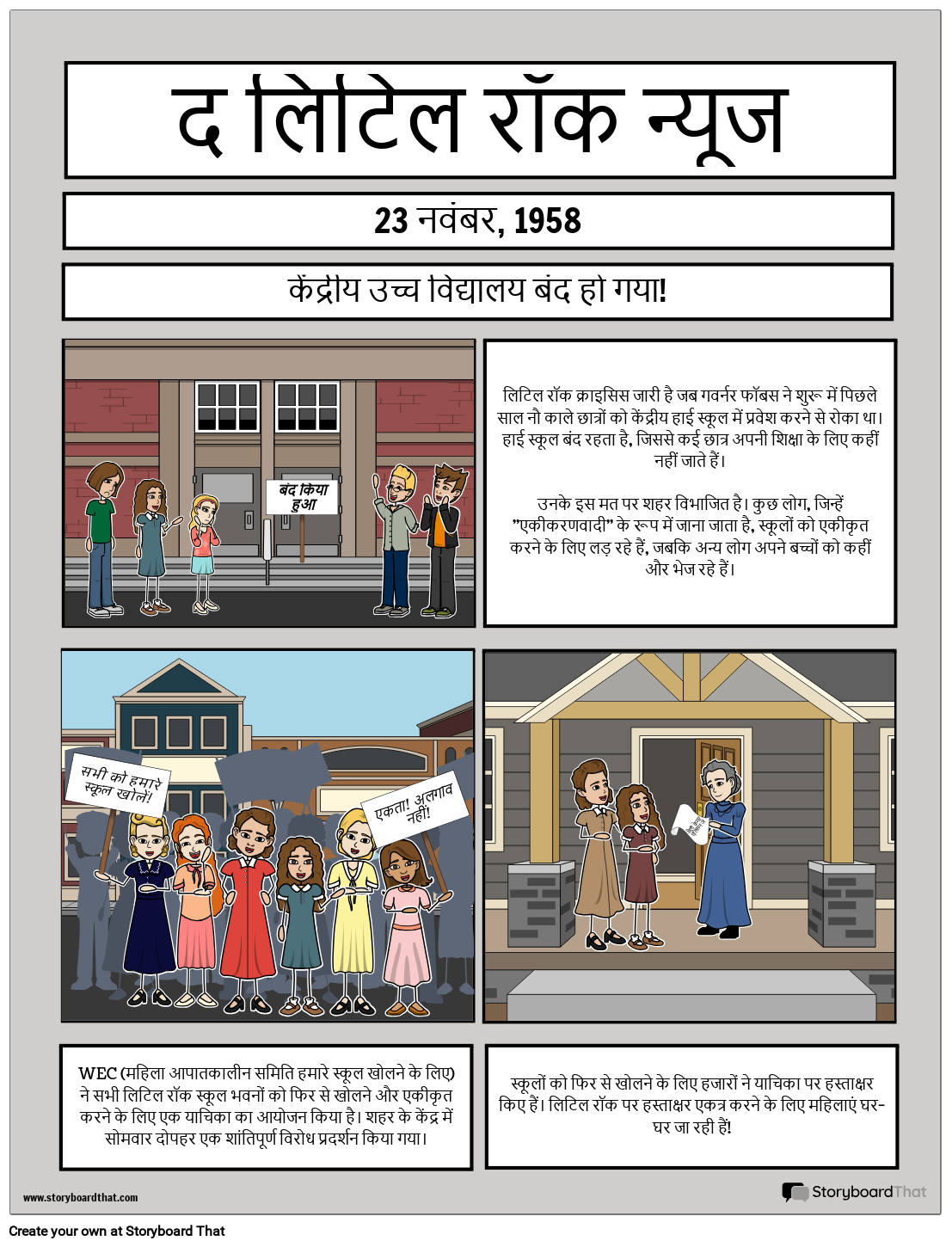 लिटिल रॉक क्राइसिस जारी है जब गवर्नर फॉबस ने शुरू में पिछले साल नौ काले छात्रों को केंद्रीय हाई स्कूल में प्रवेश करने से रोका था। हाई स्कूल बंद रहता है, जिससे कई छात्र अपनी शिक्षा के लिए कहीं नहीं जाते हैं। उनके इस मत पर शहर विभाजित है। कुछ लोग, जिन्हें "एकीकरणवादी" के रूप में जाना जाता है, स्कूलों को एकीकृत करने के लिए लड़ रहे हैं, जबकि अन्य लोग अपने बच्चों को कहीं और भेज रहे हैं।
