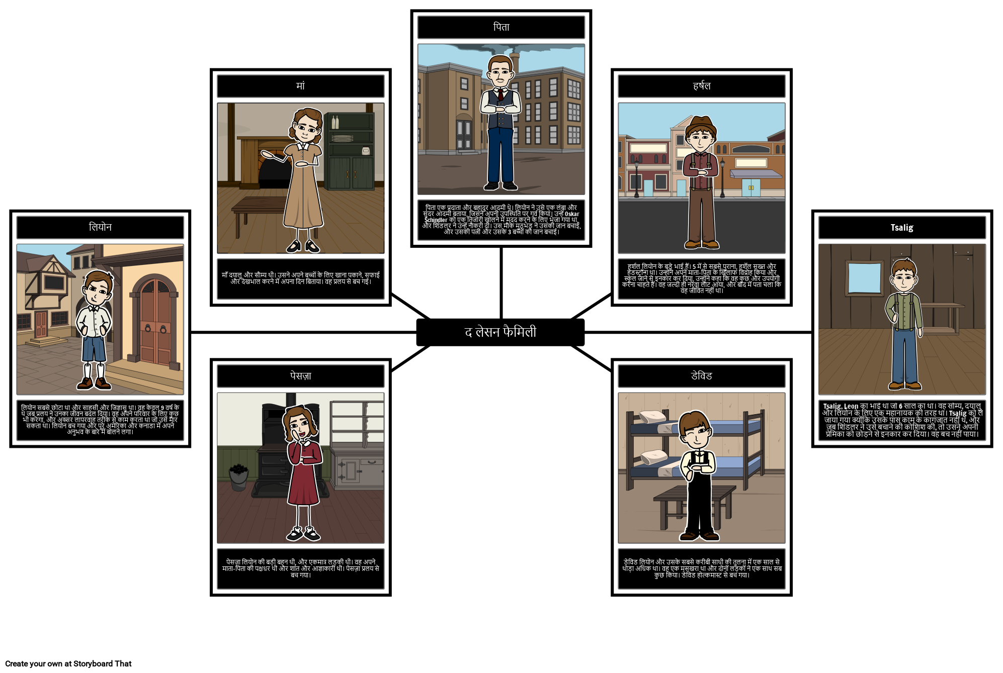 लकड़ी के बक्से पर द बॉय में वर्णित के रूप में लियोन परिवार के प्रत्येक सदस्य का वर्णन करने के लिए एक मकड़ी का नक्शा बनाएं