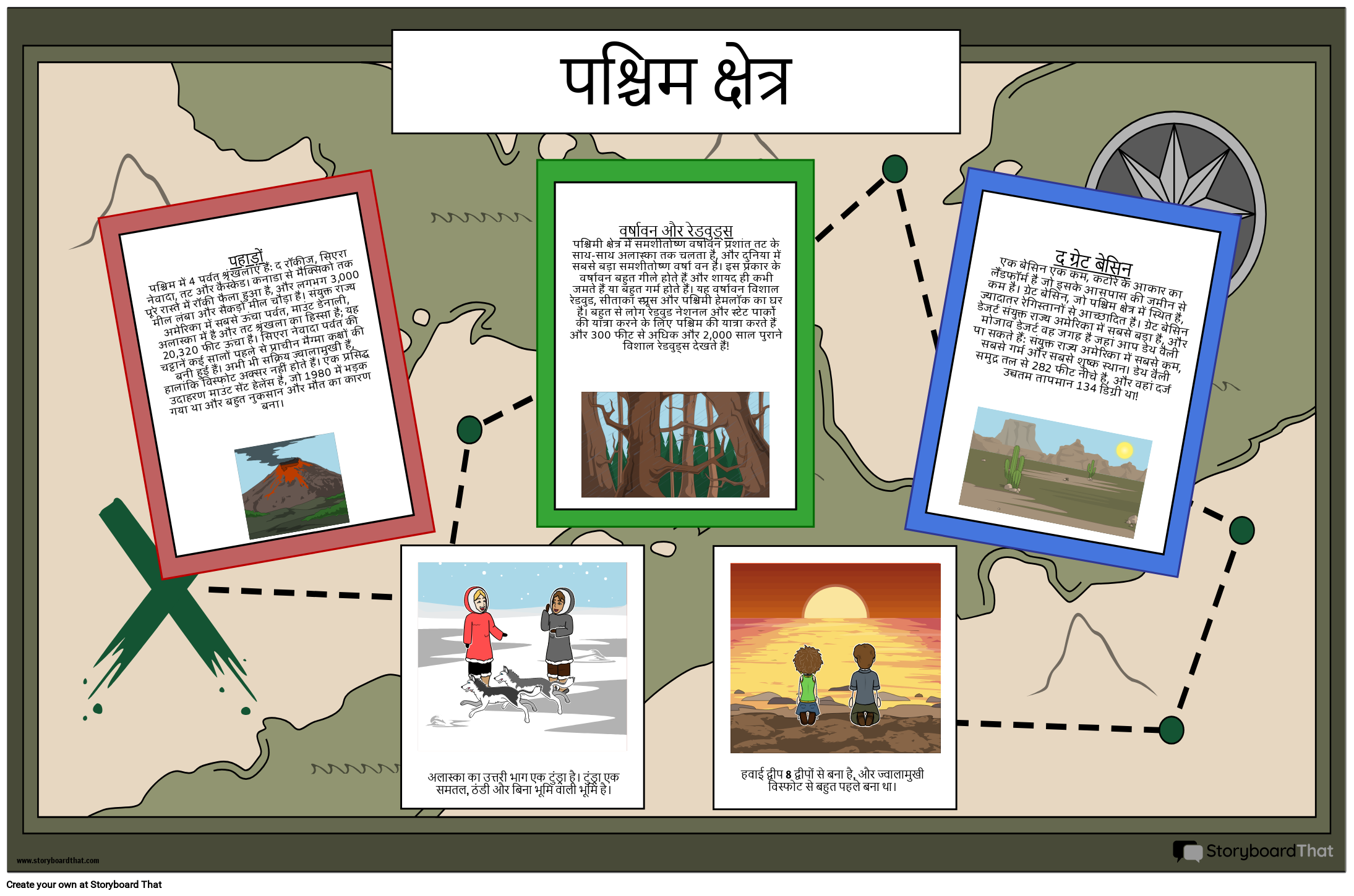 पहाड़ों पश्चिम में 4 पर्वत श्रृंखलाएं हैं: द रॉकीज, सिएरा नेवादा, तट और कैस्केड। कनाडा से मैक्सिको तक पूरे रास्ते में रॉकी फैला हुआ है, और लगभग 3,000 मील लंबा और सैकड़ों मील चौड़ा है। संयुक्त राज्य अमेरिका में सबसे ऊंचा पर्वत, माउंट डेनाली, अलास्का में है और तट श्रृंखला का हिस्सा है; यह 20,320 फीट ऊंचा है। सिएरा नेवादा पर्वत की चट्टानें कई सालों पहले से प्राचीन मैग्मा कक्षों की बनी हुई हैं। अभी भी सक्रिय ज्वालामुखी हैं, हालांकि विस्फोट अक्सर नहीं होते हैं। एक प्रसिद्ध उदाहरण माउंट सेंट हेलेंस है, जो 1980 में भड़क गया था और बहुत नुकसान और मौत का कारण बना।