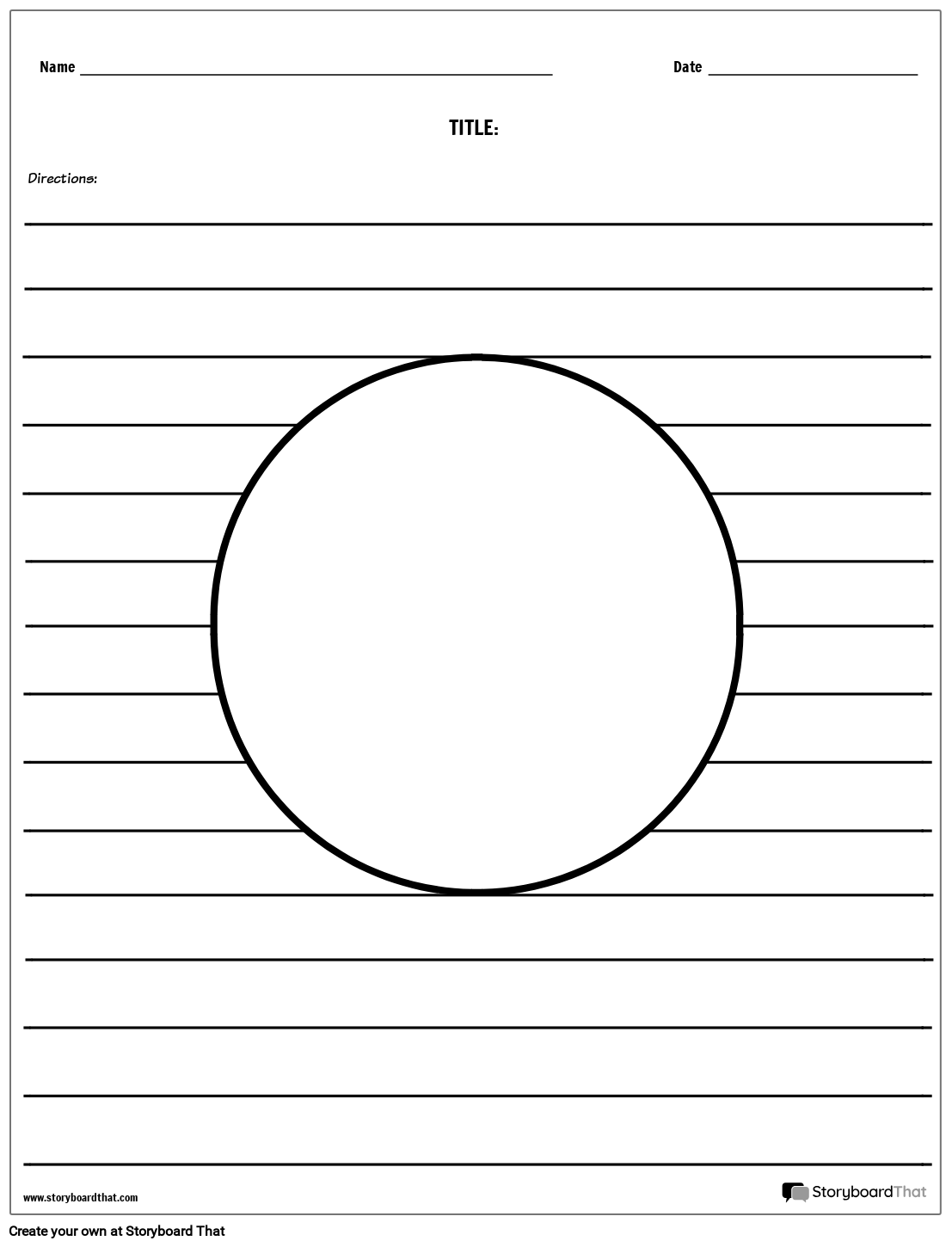 लिखने के लिए लाइनों के साथ केंद्र में सर्कल फ्रेम। इलस्ट्रेटेड स्टोरी वर्कशीट टेम्प्लेट। छात्रों से कहानियां लिखने और चित्र बनाने के लिए कहें!