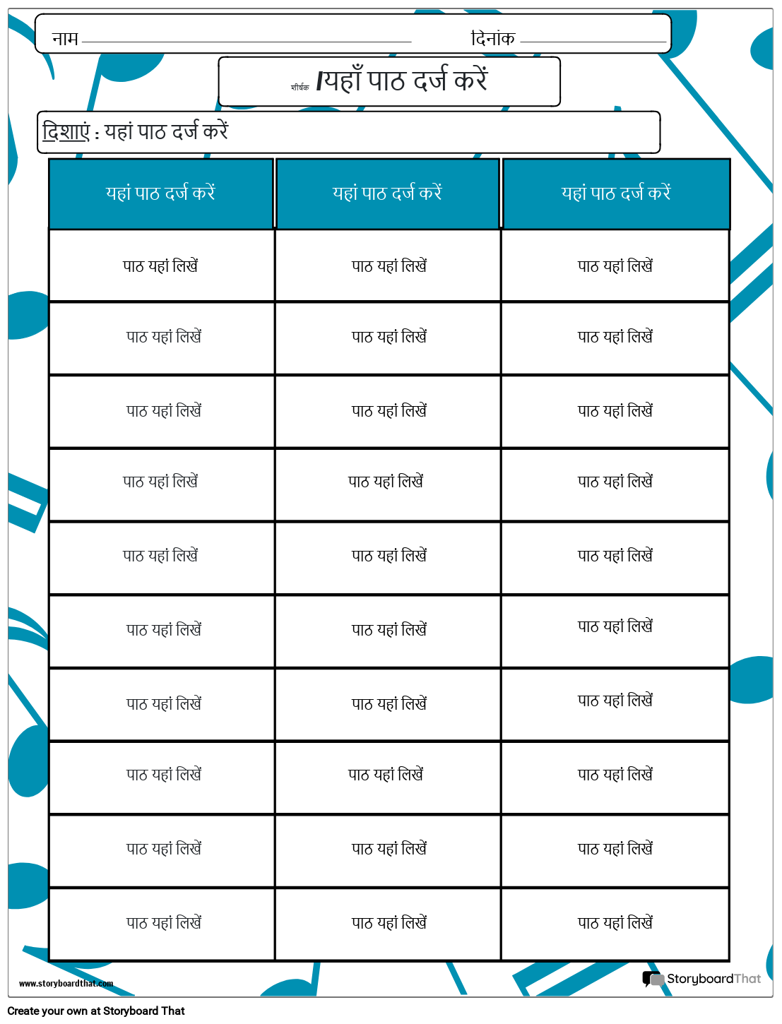 म्यूजिक नोट्स के साथ 3 कॉलम टेबल वर्कशीट - डिजिटल रूप से प्रिंट या उपयोग करें!