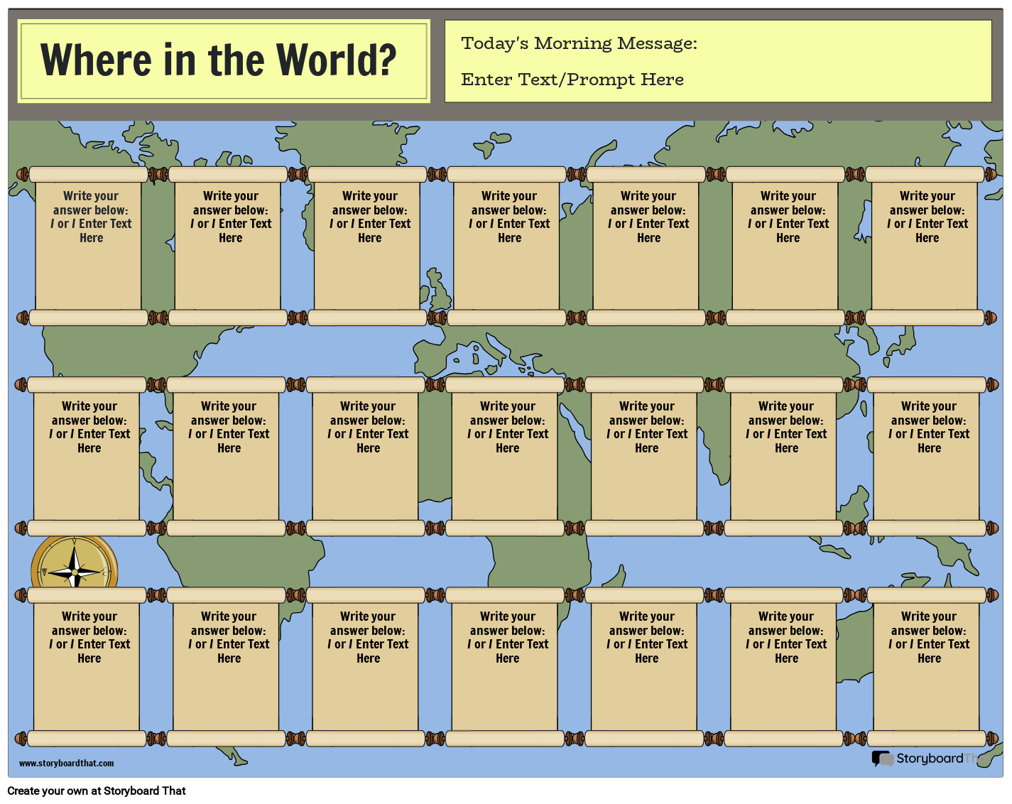 पूरी कक्षा के लिए सुबह के संदेशों को एक सफेद बोर्ड पर प्रक्षेपित किया जा सकता है ताकि छात्र आने पर अपने उत्तर लिख सकें।
