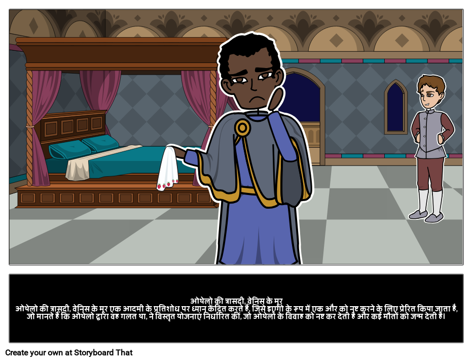 ओथेलो की त्रासदी, वेनिस के मूरओथेलो की त्रासदी, वेनिस के मूर एक आदमी के प्रतिशोध पर ध्यान केंद्रित करते हैं, जिसे इएगो के रूप में एक और को नष्ट करने के लिए प्रेरित किया जाता है, जो मानते हैं कि ओथेलो द्वारा वह गलत था, ने विस्तृत योजनाएं निर्धारित कीं, जो ओथेलो के विवाह को नष्ट कर देती है और कई मौतों को जन्म देती है।