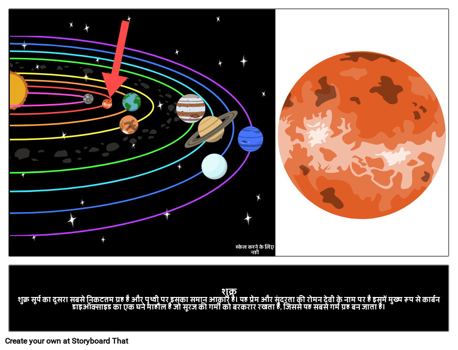 शुक्रशुक्र सूर्य का दूसरा सबसे निकटतम ग्रह है और पृथ्वी पर इसका समान आकार है। यह प्रेम और सुंदरता की रोमन देवी के नाम पर है इसमें मुख्य रूप से कार्बन डाइऑक्साइड का एक घने माहौल है जो सूरज की गर्मी को बरकरार रखता है, जिससे यह सबसे गर्म ग्रह बन जाता है।