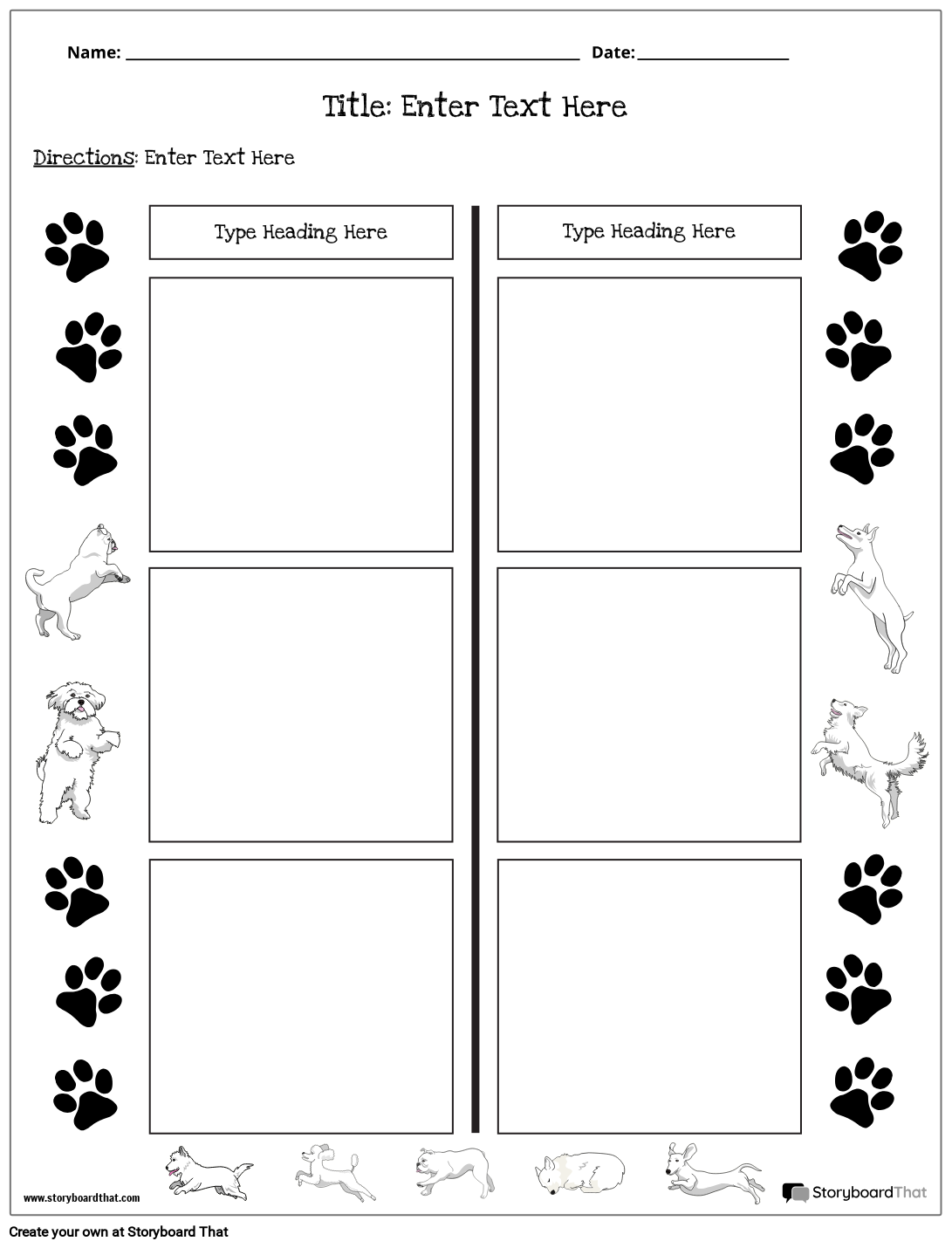 Crno-bijela T-karta s temom psa i dva stupca.
