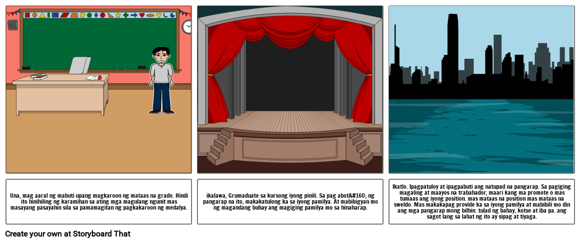 ikalawa, Grumaduate sa kursong iyong pinili. Sa pag abot ng pangarap na ito, makakatulong ka sa iyong pamilya. At mabibigyan mo ng magandang buhay ang magiging pamilya mo sa hinaharap.