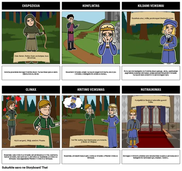 Penkių veiksmų ir dramos struktūra. ekspozicija, kylantis veiksmas, kulminacija, krintantis veiksmas ir baigtis, kaip jums patinka, siužeto diagrama