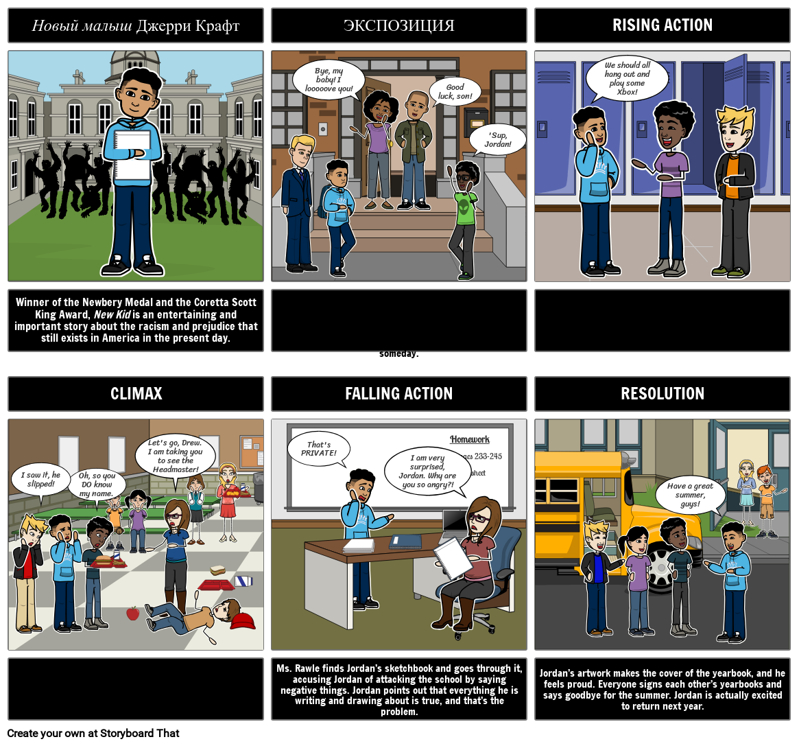 Попросите учащихся создать наглядную диаграмму сюжета «Нового ребенка» Джерри Крафт, выделив ключевые сцены или события из рассказа.