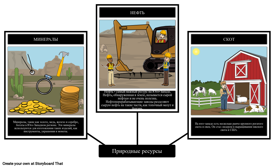 Нефть - самый важный ресурс на Юго-Западе. Нефть, обнаруженная в земле, называется сырой нефтью и не очень полезна. Нефтеперерабатывающие заводы разделяют сырую нефть на такие части, как топочный мазут и бензин.