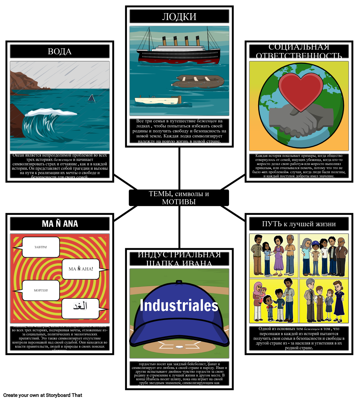 Студенты могут исследовать темы, символы и мотивы в романе, определяя несколько и создавая изображения и подписи, изображающие примеры из текста.