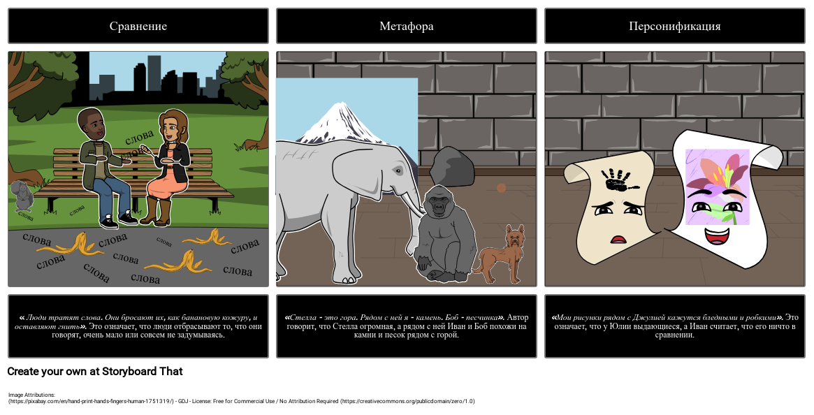 «Стелла - это гора. Рядом с ней я - камень. Боб - песчинка». Автор говорит, что Стелла огромная, а рядом с ней Иван и Боб похожи на камни и песок рядом с горой.