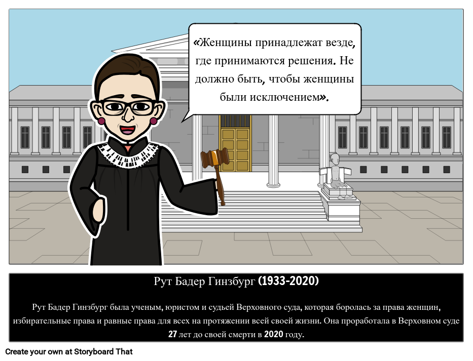 Рут Бейдер Гинзбург была ученым, юристом и судьей Верховного суда, которая боролась за права женщин, избирательные права и равные права для всех на протяжении всей своей жизни. Она проработала в Верховном суде 27 лет до своей смерти от рака поджелудочной железы в возрасте 87 лет 18 сентября 2020 года.