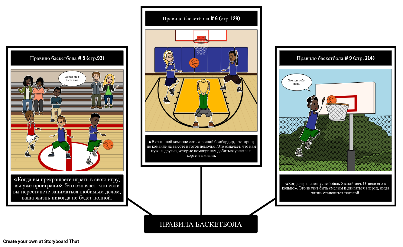 Попросите учащихся определить три правила баскетбола из книги «Кроссовер» и описать, что они означают.