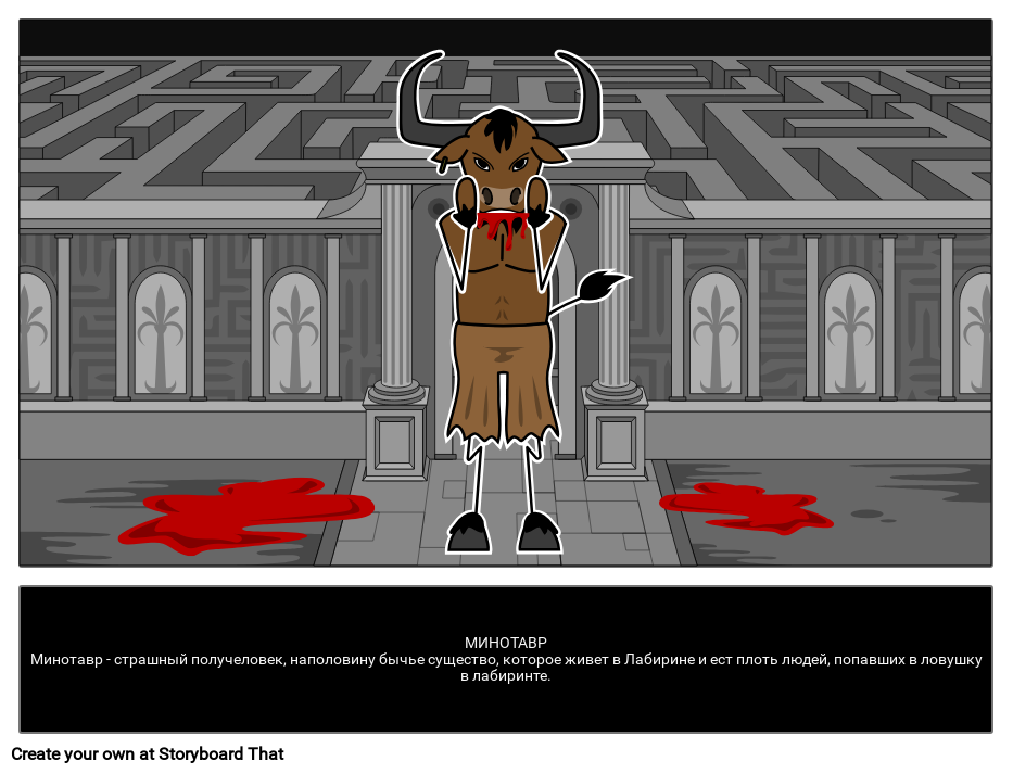 МИНОТАВРМинотавр - страшный получеловек, наполовину бычье существо, которое живет в Лабирине и ест плоть людей, попавших в ловушку в лабиринте.