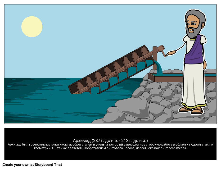 Архимед (287 г. до н.э. - 212 г. до н.э.)Архимед был греческим математиком, изобретателем и ученым, который завершил новаторскую работу в области гидростатики и геометрии. Он также является изобретателем винтового насоса, известного как винт Archimedes.
