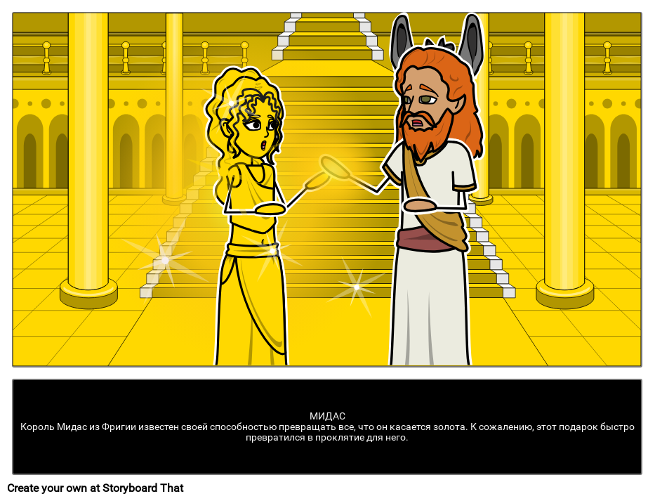 МИДАСКороль Мидас из Фригии известен своей способностью превращать все, что он касается золота. К сожалению, этот подарок быстро превратился в проклятие для него.