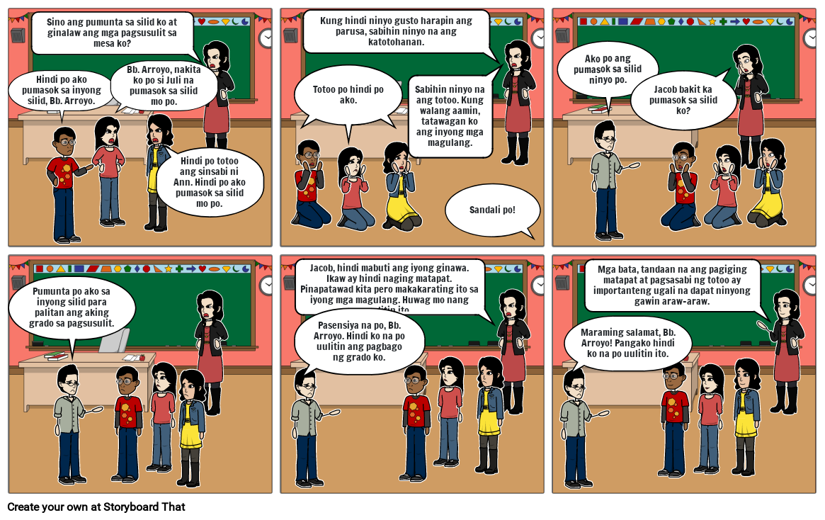 Jacob, hindi mabuti ang iyong ginawa. Ikaw ay hindi naging matapat. Pinapatawad kita pero makakarating ito sa iyong mga magulang. Huwag mo nang uulitin ito.