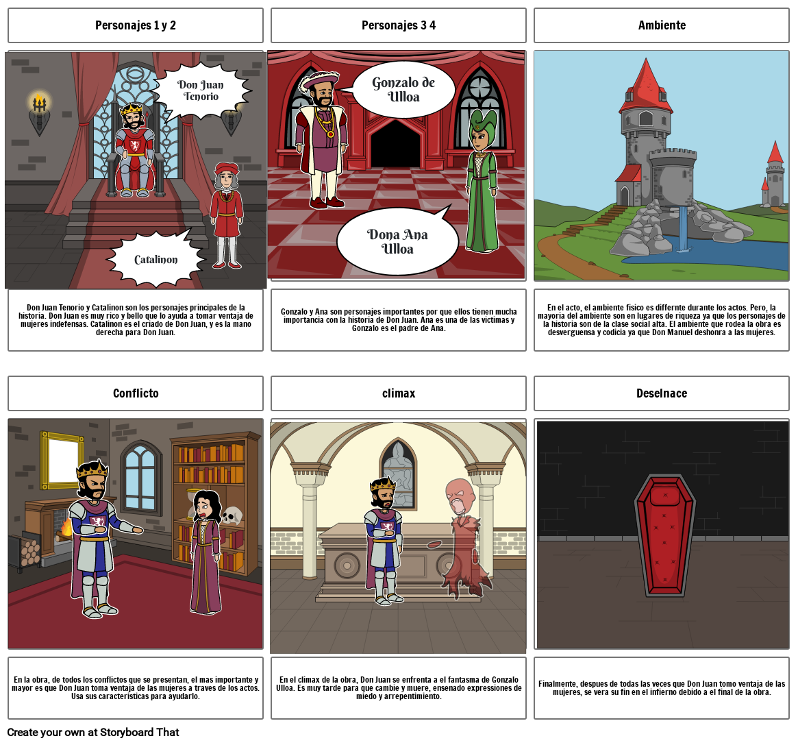 En el climax de la obra, Don Juan se enfrenta a el fantasma de Gonzalo Ulloa. Es muy tarde para que cambie y muere, ensenado expressiones de miedo y arrepentimiento.